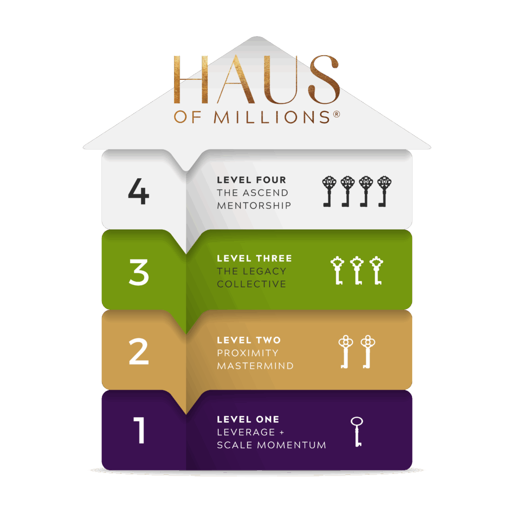 Momentum is the ground floor of the Haus of Millions and to access the frameworks, strategies, templates, and mindset shifts you need to get to the next level on the Move to Millions Continuum. If you’re at or just beyond six-figures and have your sights set on seven, this is the perfect way to get back into the Haus of Millions.